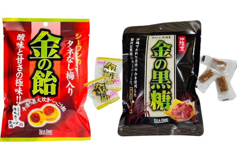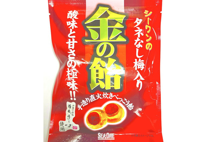 甘いべっこう飴とすっぱい乾燥梅干しが一度に楽しめる、シーワンの代表作「金の飴」。一口食べれば、べっこう飴の甘さと梅干しの酸っぱさが織りなす絶妙なハーモニーが広がります。お土産やギフトとしても大変喜ばれる人気の商品です。
